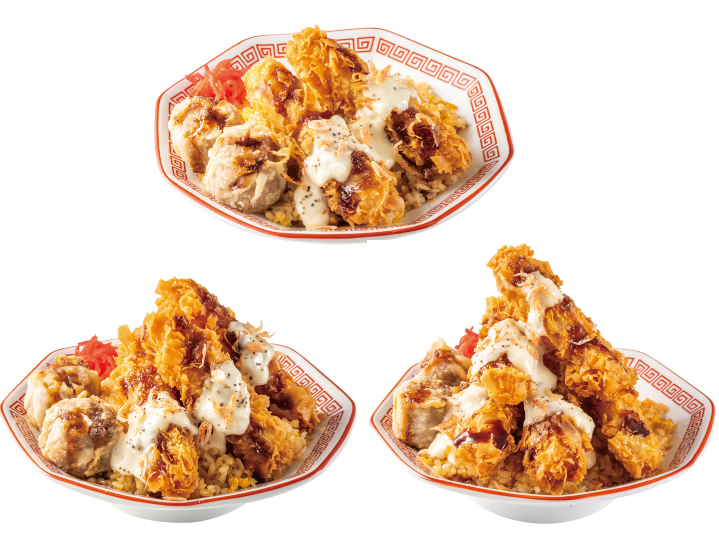 タルタルソースとテリヤキ風ソースが海老カツと絡み合い、炒飯との相性は抜群です。